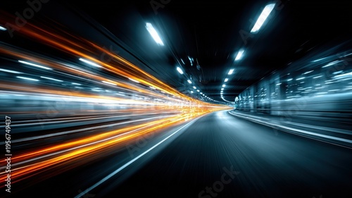 Fototapeta premium Dynamic Light Streaks in Urban Tunnel: Abstract Speed and Futuristic...