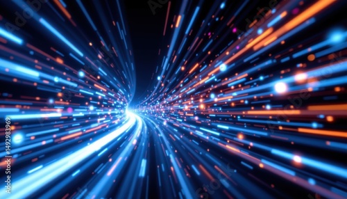 Obraz premium Dynamic light trails digital space abstract art high-tech environment close-up view visual concept