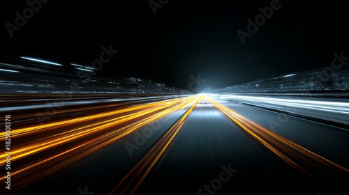 © Mitchell, Obraz premium Dynamic light trails illuminate a futuristic city highway at night, conveying speed, motion, and modern innovation for transportation and technology concepts