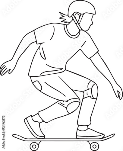 Fototapeta premium Dynamic line art silhouette of a skater in motion with protective gear