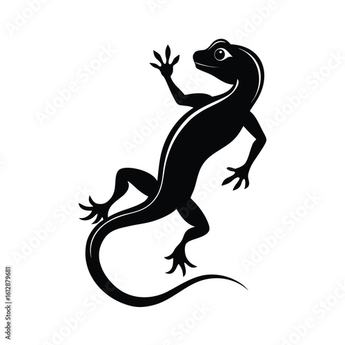 Fototapeta premium Dynamic lizard silhouette climbing upwards against a clean white background