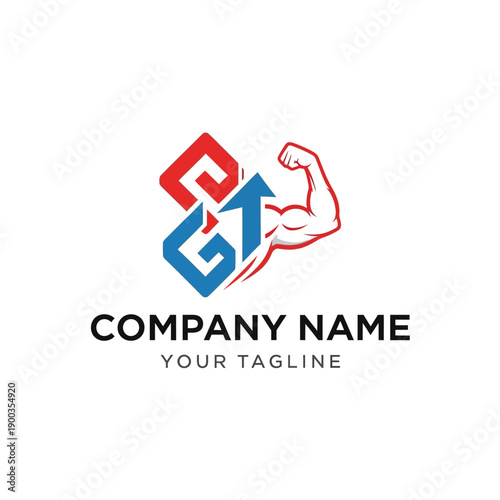 Fototapeta premium Dynamic Logo Design Featuring Interlocking Geometric Shapes and a Muscular Arm.