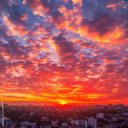 Naklejka premium Dynamic Mexico City Sunset with Colorful Clouds