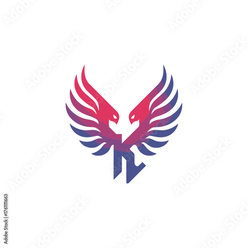 Obraz premium Dynamic modern abstract logo design featuring two stylized birds with spread wings, in a vibrant red-to-purple gradient