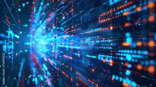 © touseef, Obraz premium Dynamic molecule vector illustration: speed movement pattern on dark blue background - hi-tech digital technology concept