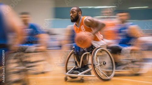 Fototapeta premium Dynamic Moment of Wheelchair Basketball Player in Action