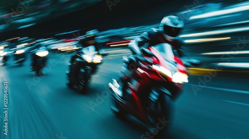 © MikhailAiman, Obraz premium Dynamic Motorcycle Race with Motion Blur Effect