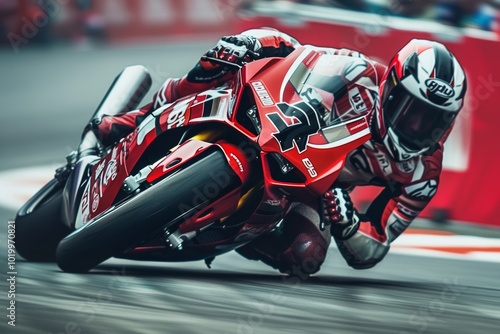 Naklejka premium Dynamic motorcycle racing action on the track captured with motion blur techniques