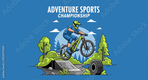 Obraz premium Dynamic Mountain Biker Soaring Through An Extreme Adventure Sports Championship Course