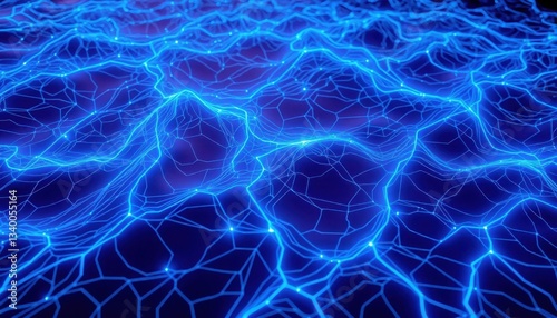 Obraz premium Dynamic Neon Blue AI-Inspired Digital Surface, Abstract Topography, Fluid...