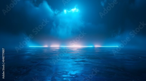 Fototapeta premium Dynamic Neon Blue Backdrop with Abstract Light Patterns Ideal for Tech and...