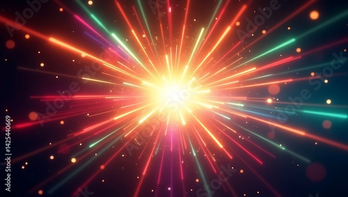 Naklejka premium Dynamic Neon Burst with Colorful Rays and Sparkling Particles, Ideal for...