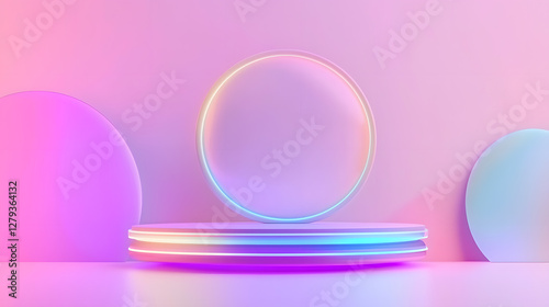 © ell, Obraz premium Dynamic neon circles abstract studio digital art colorful background front view modern design concepts