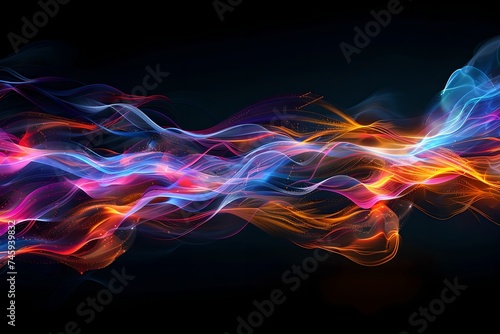 © dreamdes, Fototapeta premium Dynamic neon light waves. Abstract energy flow background. Global connection concept. Big data, network visualization, blockchain, web. Future digital technology. Ai and neural networks