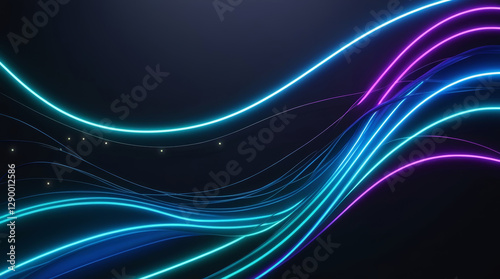 Naklejka premium Dynamic neon waves: futuristic abstract design with glowing blue and purple lines