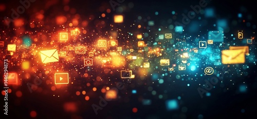 © Martinah, Obraz premium Dynamic network communication visualized with vibrant, glowing data stream
