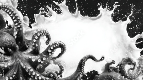 Obraz premium Dynamic Octopus Ink Splash Forms Striking Border With Clean White Space for...