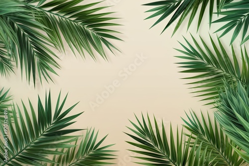 © Michael, Fototapeta premium Dynamic Palm Leaves Composition on Pale Backgrounds 3D Illustration