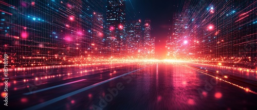 © Nuntapuk, Obraz premium Dynamic Pastel Toned Cyberspace Dimensions at Night
