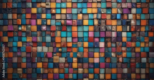 Fototapeta premium Dynamic photo mosaic; colorful squares & rectangles in varied sizes , art,...