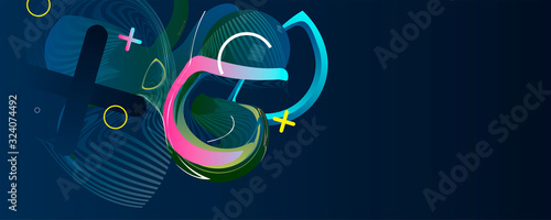 © Olya Kartavaya, Naklejka premium Dynamic pink shapes composition geometric liquid classic blue color futuristic