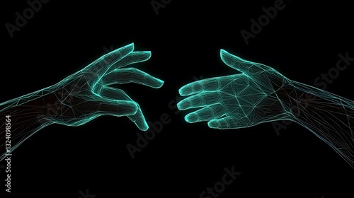 © Mortin, Fototapeta premium Dynamic Polygonal Wireframe Human Hands Stretching Illustration