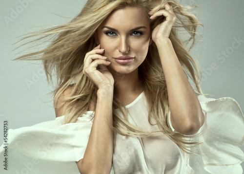 Naklejka premium Dynamic portrait of a beautiful blond woman