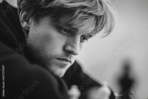 © Gary, Obraz premium dynamic portrait of chess player deep in thought with contemplative expression on their face