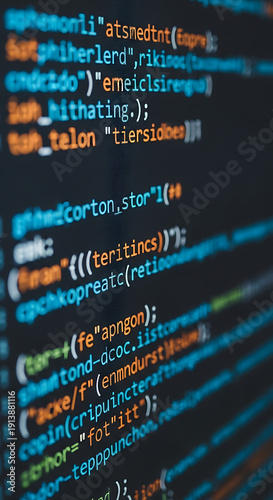 © MYS Design, Obraz premium Dynamic programming logic displayed on a screen, revealing intricate algorithms and the rapid evolution of digital innovation shaping modern technology