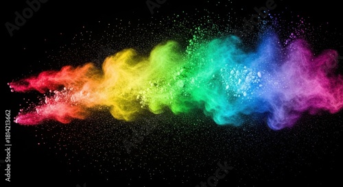 © MFaisal, Obraz premium Dynamic Rainbow Color Powder Cloud Exploding Horizontally on Black Background.