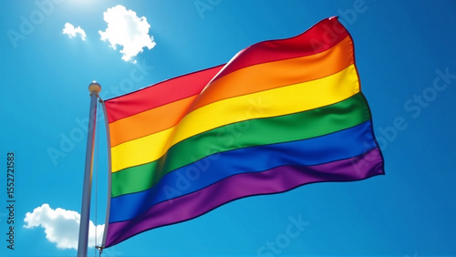 Obraz premium Dynamic Rainbow Flag Movement in Bright Sky