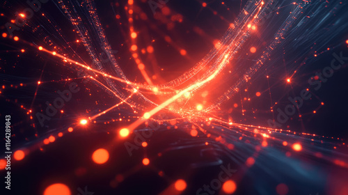 Fototapeta premium Dynamic red and blue light trails creating an abstract technological pattern