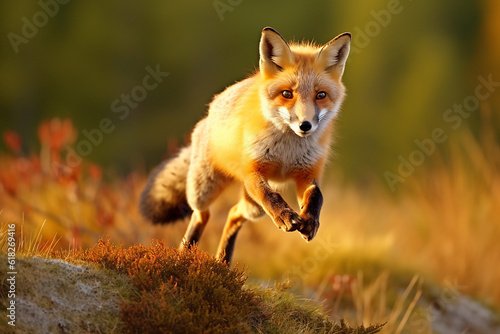 Fototapeta premium Dynamic Red Fox Jumping in Hunting Action - Created with Generative AI Tools