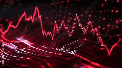 Fototapeta premium Dynamic red line graph representing data trends on a dark background.
