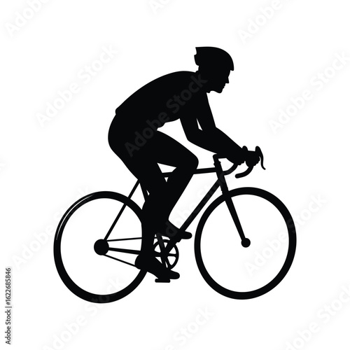 Fototapeta premium Dynamic road cyclist silhouette, athlete riding racing bicycle, cycling sport icon vector