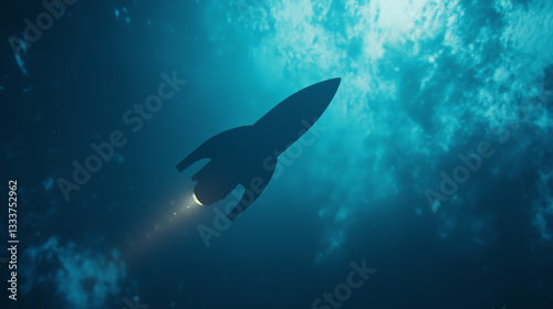 Fototapeta premium Dynamic Rocket Silhouette on Gradient Blue Background with Soft Ambient Glow...