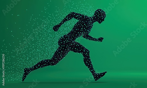 Naklejka premium Dynamic Running Figure with Particles on a Green Background