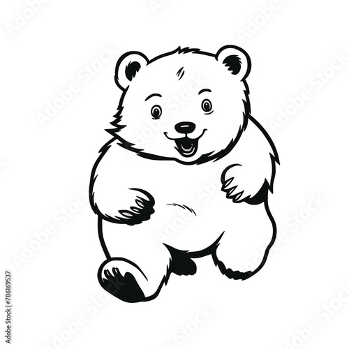 Fototapeta premium dynamic running teddy bear, Black and white, line drawing, white background...