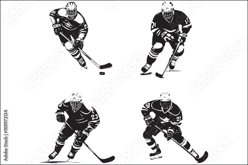 Fototapeta premium "Dynamic Set of Hockey Player Silhouette Vector Clipart"