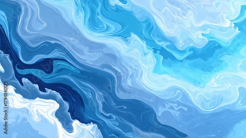 © juwairiya_nameera, Fototapeta premium Dynamic Shades Blue White Fluid Abstract Texture Background