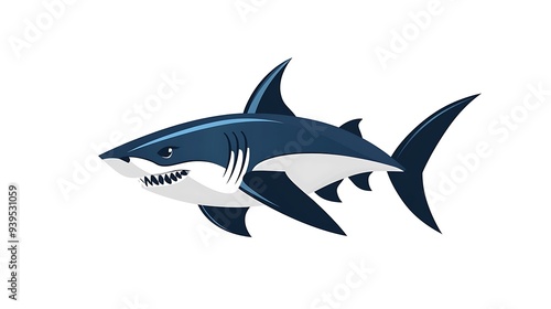 © Keattipoom, Obraz premium Dynamic Shark Logo Design in Sleek Vector Style with Dark Gray and Blue Colors on White Background