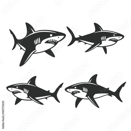 Obraz premium "Dynamic Shark Silhouette Collection Featuring Great White, Hammerhead, and...