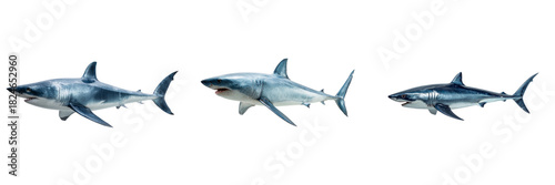 © sujittra, Naklejka premium Dynamic shark swim sequence ocean depths image collection transparent background underwater view