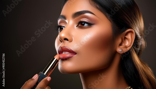 © Nirmala D'Souza, Obraz premium Dynamic shots of cosmetics being applied, such as lipstick on lips, eyeshadow on eyelids