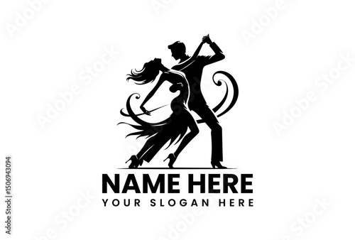 © vectorvovdesign, Naklejka premium Dynamic silhouette of a couple gracefully dancing tango with passion. Dance concept