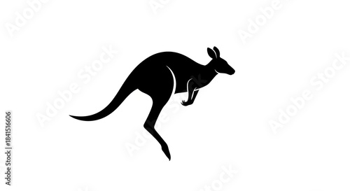 Fototapeta premium Dynamic Silhouette of a Leaping Kangaroo on a White Background.