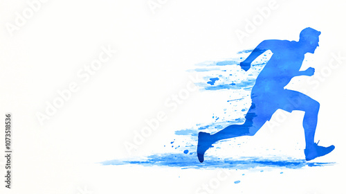 Naklejka premium Dynamic Silhouette of a Runner in Blue Watercolor Style