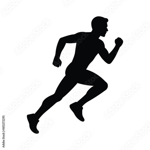 Fototapeta premium Dynamic silhouette of a running man in motion. Perfect for fitness, sports, health, athletics, or active lifestyle themes. Energetic pose captures speed and determination.