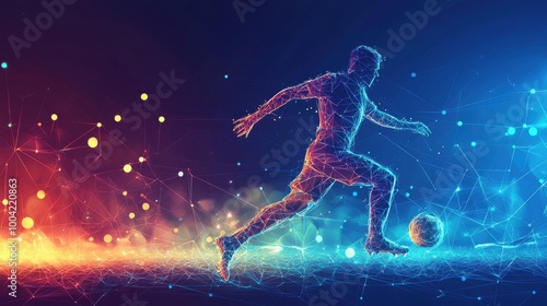 Naklejka premium Dynamic silhouette of a soccer player in action, surrounded by vibrant...