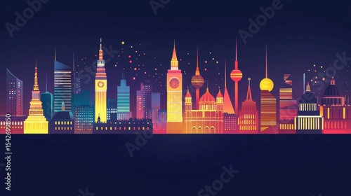 © Thanarat, Fototapeta premium Dynamic Silhouette Skyline of Multiple European Cities in High Fidelity